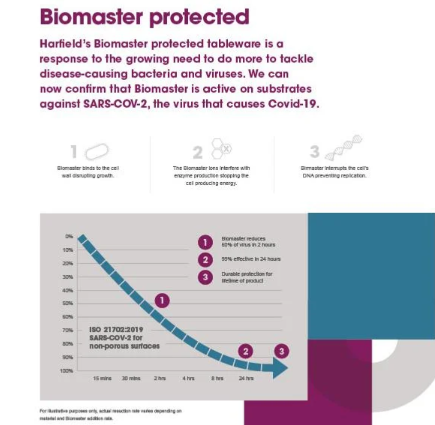 - Active Defence: Biomaster is active against a wide range of pathogens, confirming its effectiveness against SARS-COV-2 (the virus that causes COVID-19).