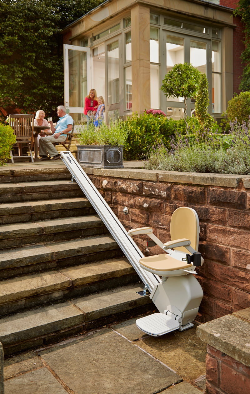 - Acorn Outdoor Stairlift: Fully weather-resistant with a protective cover, designed to provide access to gardens, decks, or steep driveways.